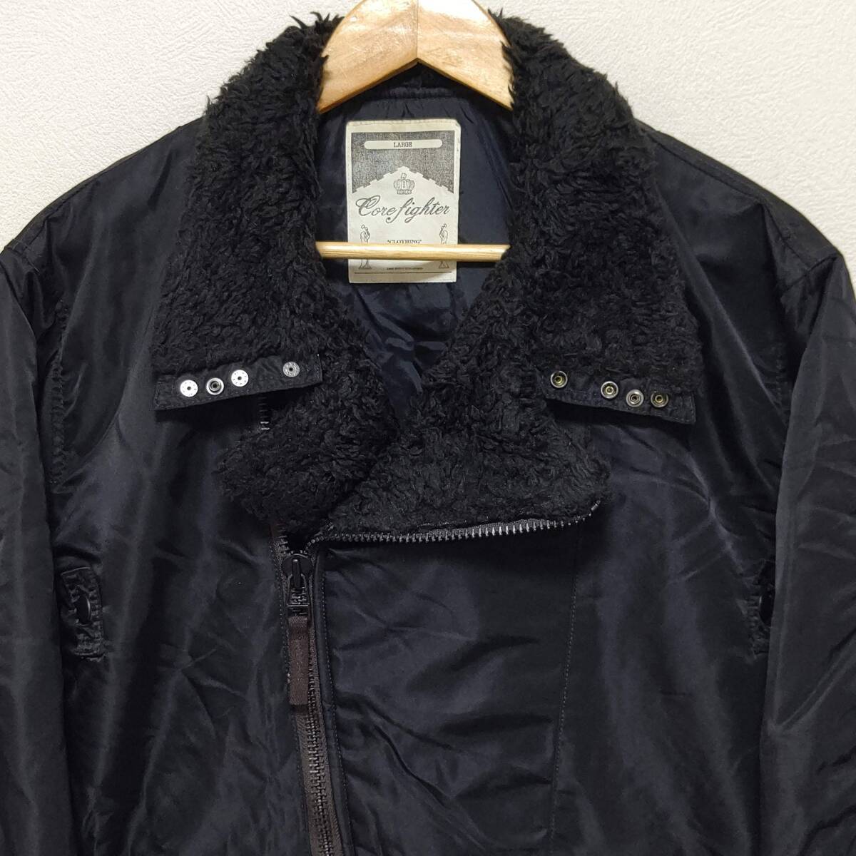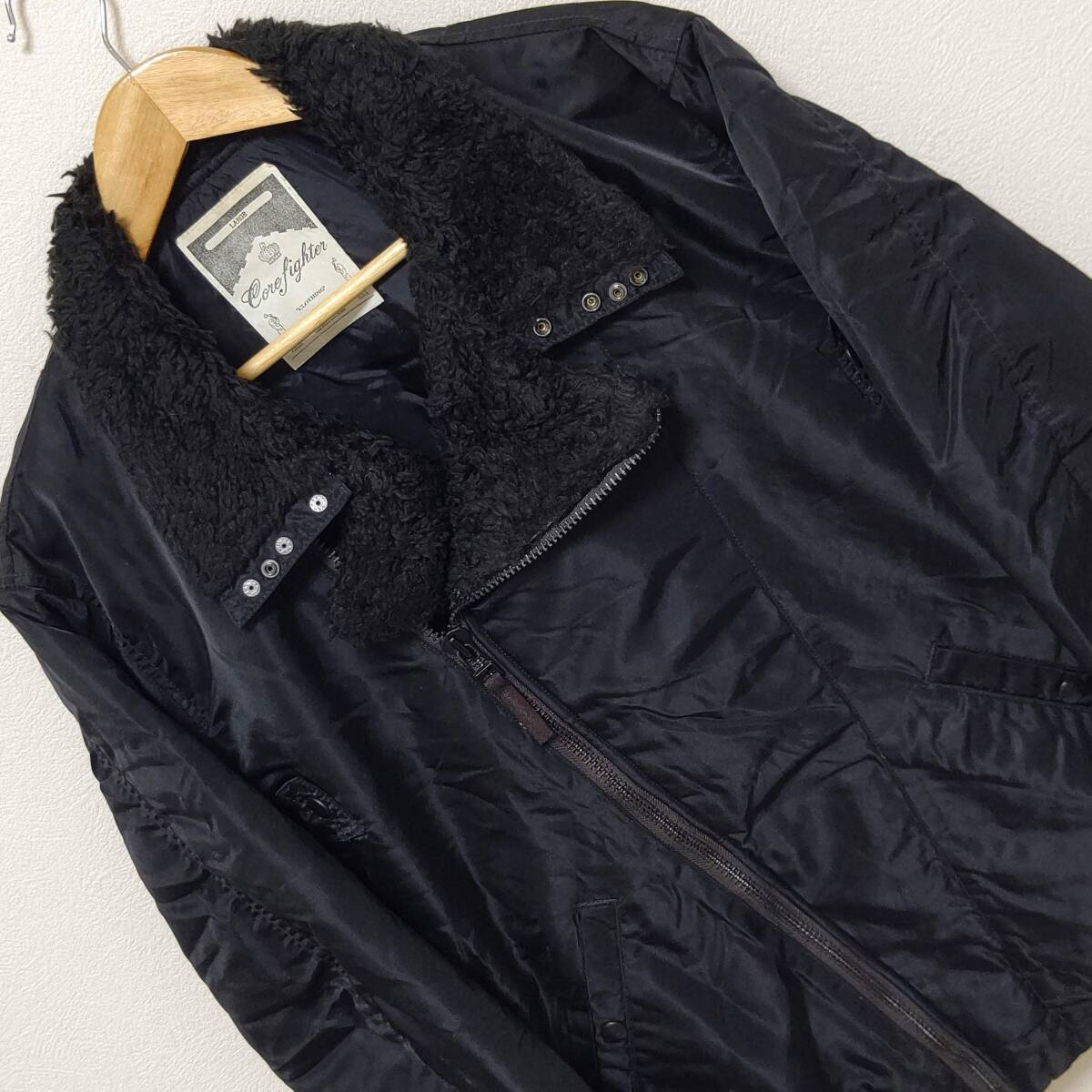 【COREFIGHTER】コアファイター ダブル ライダース ジャケット 襟ボア×ナイロン素材 ブラック ロック バンド メンズL/Y11328j