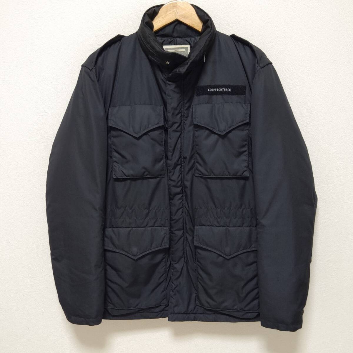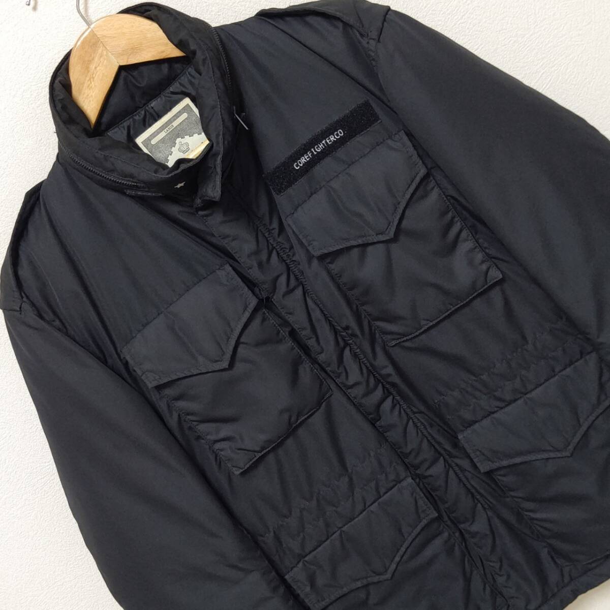 【COREFIGHTER】コアファイター ミリタリー M-65 ダウン ジャケット ブラック 黒 羽毛100% ボリューム大 メンズ サイズL/Y4835j