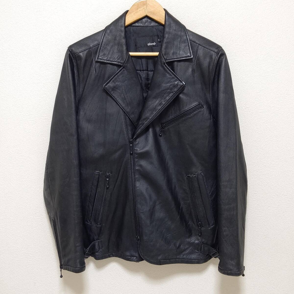 【glamb】グラム 羊革 レザー ライダース ジャケット ダブル ブラック ロック バンド アウター 革ジャン 本革 メンズL/Y11327j